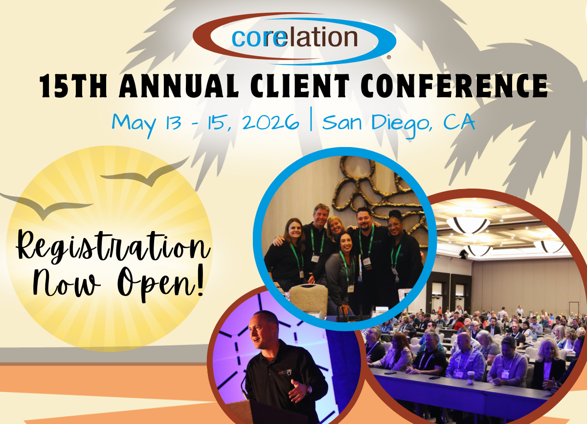 EVENTS Interested in presenting at an upcoming Corelation event? Let us know here! PRESS RELEASES Hanscom Federal Credit Union Selects Corelation’s KeyStone to Advance Its Members First Mission and Long-Term Innovation Wings Credit Union Signs with Corelation, Selecting KeyStone to Elevate Its Future 2025 in Review: Corelation Delivers Record-Breaking Results, Reinforcing Market Leadership with 38 New Client Signings Innovation in Action: Corelation’s 2025 Executive Forum Unites Visionary Credit Union Leaders in San Diego Corelation Continues Its Growth with 13 New Credit Union Signings in Third Quarter 2025, Totaling $9.9 Billion in Assets Corelation Welcomes Seven New Credit Unions in Second Quarter 2025, Totaling $9.8 Billion in Assets Corelation Hosts 14th Annual Client Conference, Commemorating 15 Years of Service & Innovation Corelation Signs Seven Credit Unions in the First Quarter 2025, Expanding the KeyStone Core Impact Corelation Celebrates 15 Years of Success with 33 Signings, Another Record-Breaking Year in 2024 Corelation Elevates Rob Landis to Chief Executive Officer, Theresa Benavidez Named CEO Emeritus Corelation’s 2024 CEO & CTO Forum Inspires Innovation and Collaboration in Credit Union Leadership Corelation Announces Seven New Credit Union Partnerships in Third Quarter 2024, Strengthening Industry Leadership Corelation Marks 15 Years of Transforming Credit Union Technology Corelation Continues to Expand with New Credit Union Signings in Second Quarter 2024 $8.9 Billion Desert Financial Credit Union Renews Corelation Partnership, Extending Contract for 10 More Years MOREVIDEOS 1 Corelation Company Culturehttps://i.vimeocdn.com/video/2063186745-1549894d7d1123a23a688e5e92b2b2bbaa35d5b13ccccbe9c87579b2e0cc8ed1-d_960x540?&r=pad®ion=us2 2022 CEO/CTO Forum: Corelation's President Rob Landishttps://i.vimeocdn.com/video/1527357644-6424e25c0a819ded8f3e5bd1997a37c2d894c1c924f1df98ba60df17f37e5d49-d_960x540?r=pad3 2022 CEO/CTO Forum: Data Analyticshttps://i.vimeocdn.com/video/1527337959-0765f63ff36648cf9bc275aea51bef11d96f65e69b3f2edc3073fa39c52c1c8c-d_960x540?r=pad4 2022 CEO/CTO Forum: Digital Wealth Managementhttps://i.vimeocdn.com/video/1527355243-ee30362d3ccd0c37b7c9c68a56f0ddf9a9bdb7e1a2d45979c0467c031cd65e9d-d_960x540?r=pad5 2022 CEO/CTO Forum: Digital IDhttps://i.vimeocdn.com/video/1527361490-f67ff7b27177a5d869441fd36cf708ec56742a5351370362048e95d4cd8273da-d_960x540?r=pad6 2022 CEO/CTO Forum: Economic Predictionshttps://i.vimeocdn.com/video/1526629663-0816dc1a67472d652056868ad1012851290522a9627956d3e01d4640182d89ef-d_960x540?r=pad7 2022 CEO/CTO Forum: The Dark Webhttps://i.vimeocdn.com/video/1526969576-09e6717c2a249a9d1e911850ba9390c709830e0e996335cbf776dbff46ea2d05-d_960x540?r=pad8 2022 CEO/CTO Forum: Corelation's Merger Teamhttps://i.vimeocdn.com/video/1527332814-240999a2bb1a2512ce579772d3170750dad08509d0851171326f452029f9b595-d_960x540?r=pad9 2022 CEO/CTO Forum: Merger Predictions in a Post-Pandemic Worldhttps://i.vimeocdn.com/video/1527323974-9e9106d4c4b511a441bbf6e48144a59a5ed315bc2c41240fddd3c75998a58be9-d_960x540?r=pad10 Jeff Dent, Chief Innovation Officer at CUIntersecthttps://i.vimeocdn.com/video/1472366037-1803dbf9d980450f61a86eb1e7cf950a6e70fe735b76cfa8473ab8bbb403f3cb-d_960x540?r=pad11 Wescom CU - Darren Williams, President/CEO Enhancing Credit Union Relevance in a Quickly-Changing Worldhttps://i.vimeocdn.com/video/1437601309-560eef80e9a98cef62fecc6934e534d352975dbb3c4c0d879f4698def6243056-d_960x540?r=pad12 Lone Star CU - Becky Reed, CEO Managing a Remote First Post-Pandemic Credit Union Workplacehttps://i.vimeocdn.com/video/1436921079-ef4aef224fb8c3a040418afe63e6a161e1785622f854a734cfce77bbcae958ce-d_960x540?r=pad13 Clearwater CU - Meagan Kraft, SVP of Operations & Devin Carlson, Data Analyst Coolness of Corelationhttps://i.vimeocdn.com/video/1439055232-13ad80646230f1b74529327ae9b4c0d7caca78bf31843f9fe10197da6f14f944-d_960x540?r=pad14 Andy Janning, NO Net Solutions President Cancer, COVID, and 2 Good Dogs: Lessons from the Worst Best Years of My Life.https://i.vimeocdn.com/video/1440364725-82d782c1d608a0cd49721033ebde0f403a2ba287d87692d34d4fe872a536fef8-d_960x540?r=pad15 John Bratsakis, MDDCCUA President/CEO Regulation Yoga: How to Stay Flexible in a Regulatory Worldhttps://i.vimeocdn.com/video/1435419788-50a49ffb1f4b3f6b6f49125bfac662f6a8ff437ee10527ce41081aa1b01571fa-d_960x540?r=pad16 Sundie Seefried, Safe Harbor Financial President/CEO Managing a Cannabis Portfoliohttps://i.vimeocdn.com/video/1437617094-f61940fe87ae4ad5828203b3ec0ddd97ac811f192e457ff4fe9d3febbf1210cb-d_960x540?r=pad17 2022 Corelation Client Conference Invitehttps://i.vimeocdn.com/video/1390957673-34a07bc4a4fa11ed6b4c2884b3fc8c6416d80d82a08f27191d08851a922cfd9f-d_960x540?r=pad18 Corelation Launchhttps://i.vimeocdn.com/video/1059474987-58a4b972ced287b0a8f5eb990d6af9c40582bbd7d643f6f6ac08787cab398048-d_960x540?r=pad19 Corelation LoneStarhttps://i.vimeocdn.com/video/1059428810-dae0855a3d38c0aca41403fc2906a86f4071ecaed8cd96029e2d21226ed2a984-d_960x540?r=pad20 Corelation Aspirehttps://i.vimeocdn.com/video/1059444573-774319e321dbd45d9ec201b36c04d7459120d670fbb5d1b95d47f16fca699276-d_960x540?r=pad21 Corelation 2021 Virtual CEO & CTO Forumhttps://i.vimeocdn.com/video/1103883654-b6f47f63377c1ef40f1c7c476ddad055fc9a024f6591c202e679cac5a19d34f2-d_960x540?r=pad22 Corelation Bruce Cormodehttps://i.vimeocdn.com/video/968470949-b18f42d48e2d4b67f1a07deea599c3aa178f809939677dbe3a1b4852510c4014-d_960x540?r=pad23 Corelation Sales Teamhttps://i.vimeocdn.com/video/968511922-39c21b78b02535ab332cf526830d1475cf5ae561c5ff00548a4eb3bbe72cffeb-d_960x540?r=pad24 Corelation Justin Mecklenborghttps://i.vimeocdn.com/video/968476557-6970baad16573d976d8dcff3044a41a013283548e4d1ec96adbd2f4fa064b340-d_960x540?r=pad25 Corelation Philip and Lorihttps://i.vimeocdn.com/video/968487743-7d3a7c41b110b11bc9705fa212d060edf9fc26c3a685d468ff90d120a3d199b0-d_960x540?r=pad26 VibeCU: Allan McMorrishttps://i.vimeocdn.com/video/9622011