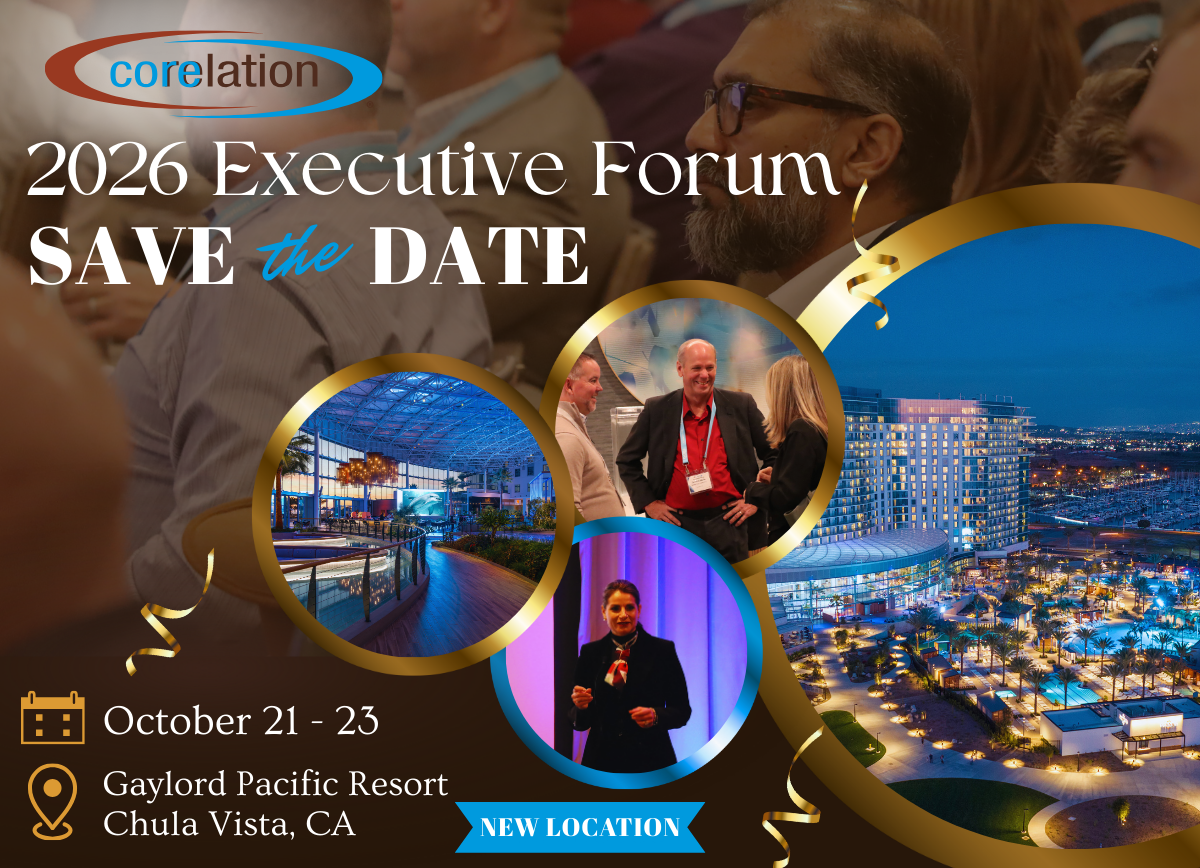 EVENTS Interested in presenting at an upcoming Corelation event? Let us know here! PRESS RELEASES Wings Credit Union Signs with Corelation, Selecting KeyStone to Elevate Its Future 2025 in Review: Corelation Delivers Record-Breaking Results, Reinforcing Market Leadership with 38 New Client Signings Innovation in Action: Corelation’s 2025 Executive Forum Unites Visionary Credit Union Leaders in San Diego Corelation Continues Its Growth with 13 New Credit Union Signings in Third Quarter 2025, Totaling $9.9 Billion in Assets Corelation Welcomes Seven New Credit Unions in Second Quarter 2025, Totaling $9.8 Billion in Assets Corelation Hosts 14th Annual Client Conference, Commemorating 15 Years of Service & Innovation Corelation Signs Seven Credit Unions in the First Quarter 2025, Expanding the KeyStone Core Impact Corelation Celebrates 15 Years of Success with 33 Signings, Another Record-Breaking Year in 2024 Corelation Elevates Rob Landis to Chief Executive Officer, Theresa Benavidez Named CEO Emeritus Corelation’s 2024 CEO & CTO Forum Inspires Innovation and Collaboration in Credit Union Leadership Corelation Announces Seven New Credit Union Partnerships in Third Quarter 2024, Strengthening Industry Leadership Corelation Marks 15 Years of Transforming Credit Union Technology Corelation Continues to Expand with New Credit Union Signings in Second Quarter 2024 Corelation Celebrates Success of 13th Annual Client Conference, Uniting Industry Leaders and Innovators $8.9 Billion Desert Financial Credit Union Renews Corelation Partnership, Extending Contract for 10 More Years MOREVIDEOS 1 Corelation Company Culturehttps://i.vimeocdn.com/video/2063186745-1549894d7d1123a23a688e5e92b2b2bbaa35d5b13ccccbe9c87579b2e0cc8ed1-d_960x540?&r=pad®ion=us2 2022 CEO/CTO Forum: Corelation's President Rob Landishttps://i.vimeocdn.com/video/1527357644-6424e25c0a819ded8f3e5bd1997a37c2d894c1c924f1df98ba60df17f37e5d49-d_960x540?r=pad3 2022 CEO/CTO Forum: Data Analyticshttps://i.vimeocdn.com/video/1527337959-0765f63ff36648cf9bc275aea51bef11d96f65e69b3f2edc3073fa39c52c1c8c-d_960x540?r=pad4 2022 CEO/CTO Forum: Digital Wealth Managementhttps://i.vimeocdn.com/video/1527355243-ee30362d3ccd0c37b7c9c68a56f0ddf9a9bdb7e1a2d45979c0467c031cd65e9d-d_960x540?r=pad5 2022 CEO/CTO Forum: Digital IDhttps://i.vimeocdn.com/video/1527361490-f67ff7b27177a5d869441fd36cf708ec56742a5351370362048e95d4cd8273da-d_960x540?r=pad6 2022 CEO/CTO Forum: Economic Predictionshttps://i.vimeocdn.com/video/1526629663-0816dc1a67472d652056868ad1012851290522a9627956d3e01d4640182d89ef-d_960x540?r=pad7 2022 CEO/CTO Forum: The Dark Webhttps://i.vimeocdn.com/video/1526969576-09e6717c2a249a9d1e911850ba9390c709830e0e996335cbf776dbff46ea2d05-d_960x540?r=pad8 2022 CEO/CTO Forum: Corelation's Merger Teamhttps://i.vimeocdn.com/video/1527332814-240999a2bb1a2512ce579772d3170750dad08509d0851171326f452029f9b595-d_960x540?r=pad9 2022 CEO/CTO Forum: Merger Predictions in a Post-Pandemic Worldhttps://i.vimeocdn.com/video/1527323974-9e9106d4c4b511a441bbf6e48144a59a5ed315bc2c41240fddd3c75998a58be9-d_960x540?r=pad10 Jeff Dent, Chief Innovation Officer at CUIntersecthttps://i.vimeocdn.com/video/1472366037-1803dbf9d980450f61a86eb1e7cf950a6e70fe735b76cfa8473ab8bbb403f3cb-d_960x540?r=pad11 Wescom CU - Darren Williams, President/CEO Enhancing Credit Union Relevance in a Quickly-Changing Worldhttps://i.vimeocdn.com/video/1437601309-560eef80e9a98cef62fecc6934e534d352975dbb3c4c0d879f4698def6243056-d_960x540?r=pad12 Lone Star CU - Becky Reed, CEO Managing a Remote First Post-Pandemic Credit Union Workplacehttps://i.vimeocdn.com/video/1436921079-ef4aef224fb8c3a040418afe63e6a161e1785622f854a734cfce77bbcae958ce-d_960x540?r=pad13 Clearwater CU - Meagan Kraft, SVP of Operations & Devin Carlson, Data Analyst Coolness of Corelationhttps://i.vimeocdn.com/video/1439055232-13ad80646230f1b74529327ae9b4c0d7caca78bf31843f9fe10197da6f14f944-d_960x540?r=pad14 Andy Janning, NO Net Solutions President Cancer, COVID, and 2 Good Dogs: Lessons from the Worst Best Years of My Life.https://i.vimeocdn.com/video/1440364725-82d782c1d608a0cd49721033ebde0f403a2ba287d87692d34d4fe872a536fef8-d_960x540?r=pad15 John Bratsakis, MDDCCUA President/CEO Regulation Yoga: How to Stay Flexible in a Regulatory Worldhttps://i.vimeocdn.com/video/1435419788-50a49ffb1f4b3f6b6f49125bfac662f6a8ff437ee10527ce41081aa1b01571fa-d_960x540?r=pad16 Sundie Seefried, Safe Harbor Financial President/CEO Managing a Cannabis Portfoliohttps://i.vimeocdn.com/video/1437617094-f61940fe87ae4ad5828203b3ec0ddd97ac811f192e457ff4fe9d3febbf1210cb-d_960x540?r=pad17 2022 Corelation Client Conference Invitehttps://i.vimeocdn.com/video/1390957673-34a07bc4a4fa11ed6b4c2884b3fc8c6416d80d82a08f27191d08851a922cfd9f-d_960x540?r=pad18 Corelation Launchhttps://i.vimeocdn.com/video/1059474987-58a4b972ced287b0a8f5eb990d6af9c40582bbd7d643f6f6ac08787cab398048-d_960x540?r=pad19 Corelation LoneStarhttps://i.vimeocdn.com/video/1059428810-dae0855a3d38c0aca41403fc2906a86f4071ecaed8cd96029e2d21226ed2a984-d_960x540?r=pad20 Corelation Aspirehttps://i.vimeocdn.com/video/1059444573-774319e321dbd45d9ec201b36c04d7459120d670fbb5d1b95d47f16fca699276-d_960x540?r=pad21 Corelation 2021 Virtual CEO & CTO Forumhttps://i.vimeocdn.com/video/1103883654-b6f47f63377c1ef40f1c7c476ddad055fc9a024f6591c202e679cac5a19d34f2-d_960x540?r=pad22 Corelation Bruce Cormodehttps://i.vimeocdn.com/video/968470949-b18f42d48e2d4b67f1a07deea599c3aa178f809939677dbe3a1b4852510c4014-d_960x540?r=pad23 Corelation Sales Teamhttps://i.vimeocdn.com/video/968511922-39c21b78b02535ab332cf526830d1475cf5ae561c5ff00548a4eb3bbe72cffeb-d_960x540?r=pad24 Corelation Justin Mecklenborghttps://i.vimeocdn.com/video/968476557-6970baad16573d976d8dcff3044a41a013283548e4d1ec96adbd2f4fa064b340-d_960x540?r=pad25 Corelation Philip and Lorihttps://i.vimeocdn.com/video/968487743-7d3a7c41b110b11bc9705fa212d060edf9fc26c3a685d468ff90d120a3d199b0-d_960x540?r=pad26 VibeCU: Allan McMorrishttps://i.vimeocdn.com/video/962201108-b8e1bf1865364232